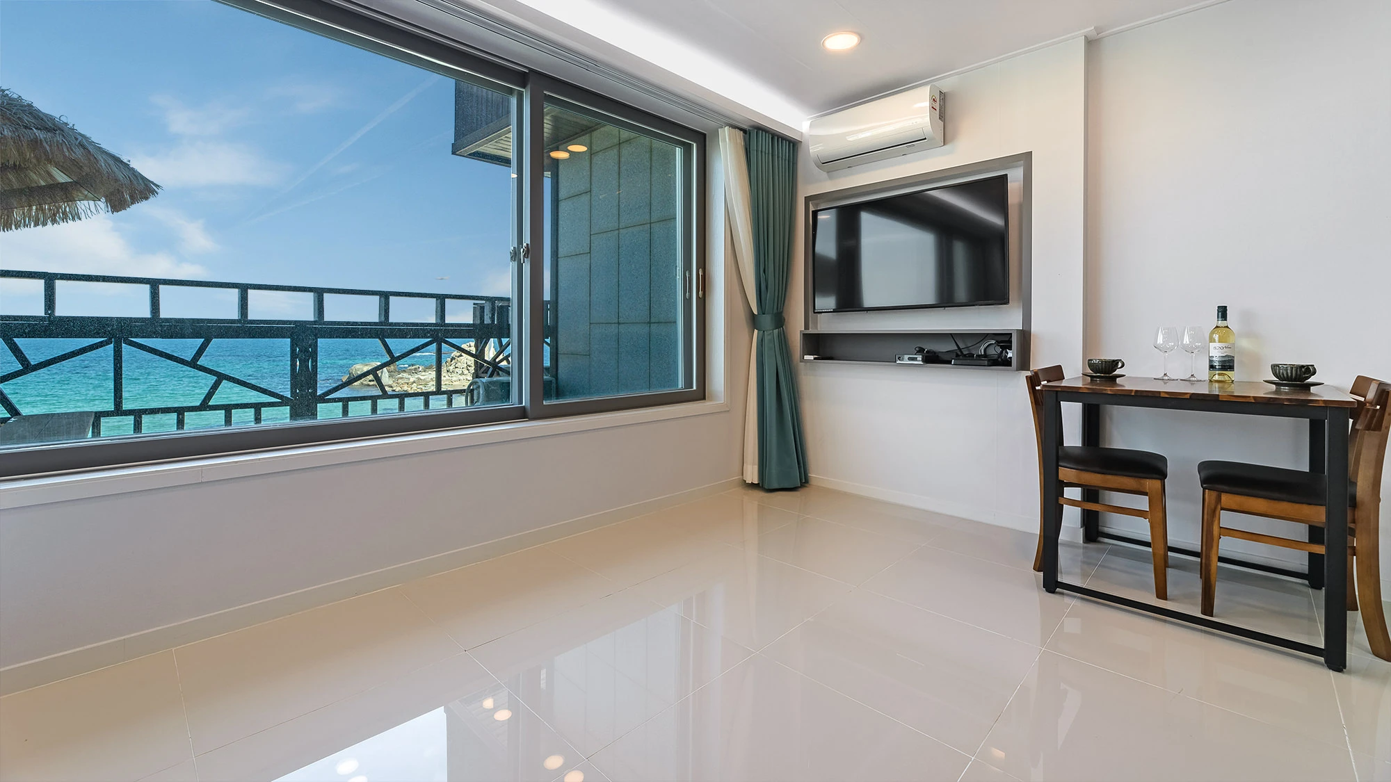 - 집기품목 : 타월, TV, 개별바비큐, 금연, 에어컨, 전기밥솥, 침대방, 드라이기, 바디워시, 샴푸, 와이파이, 인덕션, 전자레인지, 냉장고, 린스, 취사시설/도구, 커피포트, 욕실용품, VOD, 테라스, 바다전망